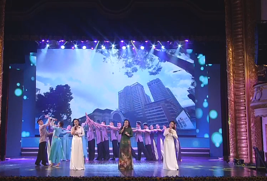 | “Tổ quốc tôi chưa đẹp thế bao giờ” với những thanh âm hào sảng, ca từ da diết cùng phần biên đạo múa công phu. |