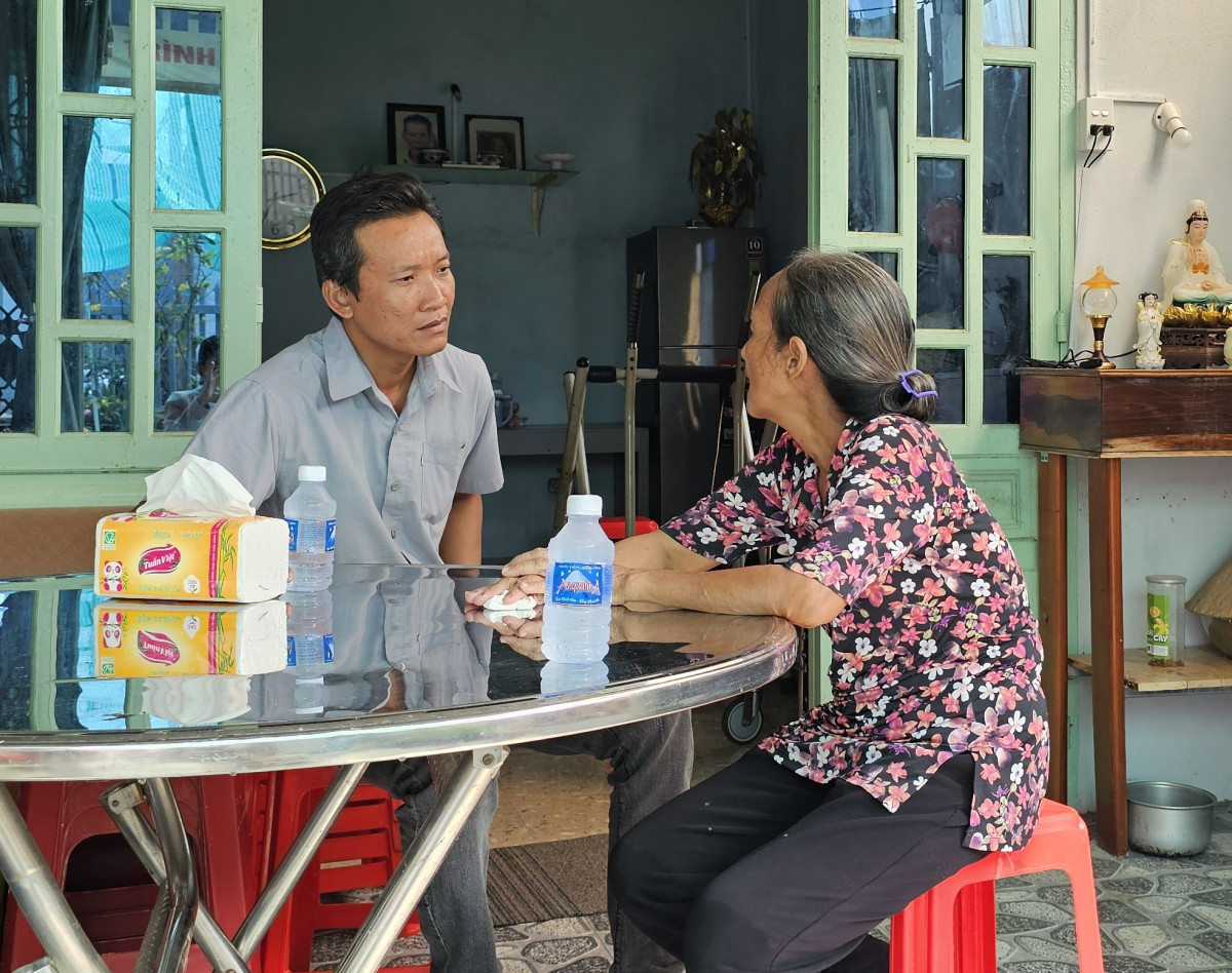 1. Thấy có khách đến, bà Nguyễn Thị Kim (ấp Thanh Hiệp, xã Thanh Phú, huyện Bến Lức) tạm ngưng việc đang làm, khập khiễng bước nhanh ra mở cổng. Nhà bà Kim tuy nhỏ nhưng kiên cố và được dọn dẹp sạch sẽ. Vợ chồng bà sống cùng con trai và cháu nội. Mấy năm trở lại đây, do bệnh nặng, chồng bà nằm liệt giường, sức khỏe của bà cũng ngày một yếu đi nên chỉ quanh quẩn ở nhà.