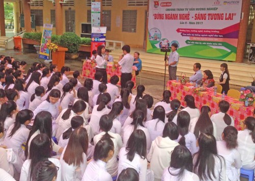 Chương trình tư vấn hướng nghiệp năm nay có nhiều nội dung hay và mới, vừa có phần tư vấn chung, vừa giải đáp những thắc mắc cụ thể về chọn trường, chọn ngành cho học sinh tham gia đặt câu hỏi. Ngoài ra, ban tư vấn còn thử nghề thực tế tại khu vực các trường, tìm hiểu việc nắm bắt thông tin tuyển sinh, tạo điều kiện cho học sinh tìm hiểu toàn cảnh tuyển sinh năm 2017.