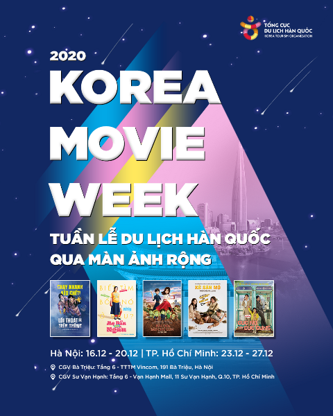 Chương trình “2020 Korea Movie Week - Tuần lễ Du lịch Hàn Quốc qua màn ảnh rộng” bao gồm hai nội dung chính là Không gian giới thiệu du lịch Hàn Quốc và Chiếu phim Hàn Quốc.