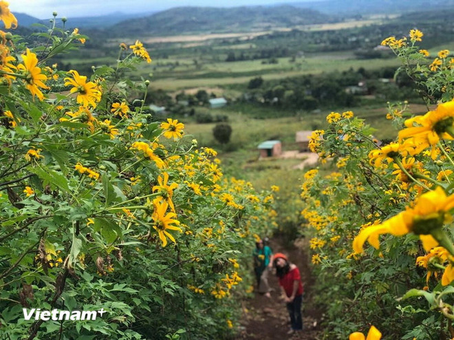 Chư Đang Ya đẹp nhất là khi vào mùa hoa dã quỳ (Ảnh: Hồng Hạnh/Vietnam+)