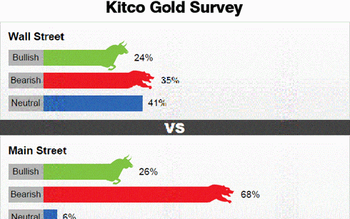 Theo kết quả khảo sát hàng tuần của Kitco News Wall Street và Main Street, hầu hết các thành phần tham gia khảo sát đều có cái nhìn bi quan về giá vàng trong tuần tới, trong khi hầu hết các chuyên gia thị trường lại có quan điểm trung lập, kỳ vọng giá vàng sẽ ở xung quanh mức hiện tại.