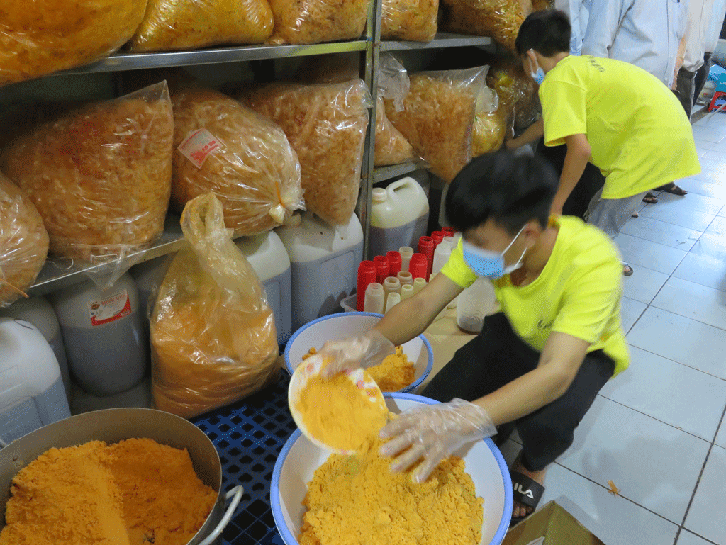 Sản xuất bánh tráng trộn tại cơ sở cô Út
