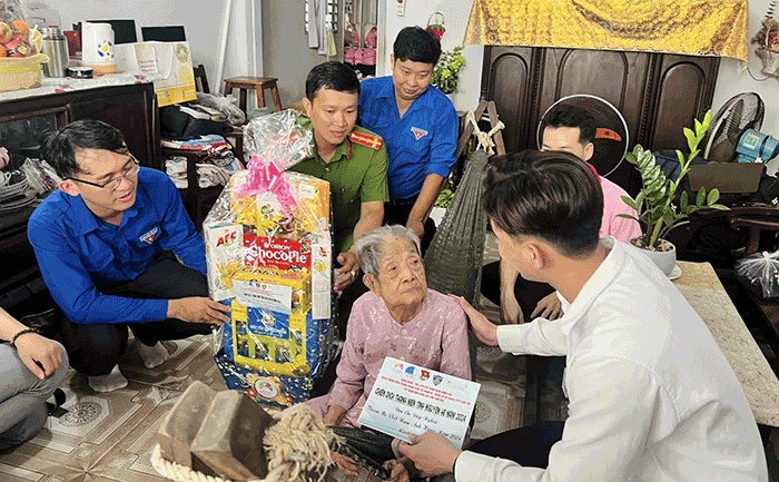 Tuổi trẻ quận Ninh Kiều và các đơn vị đến thăm Mẹ VNAH Nguyễn Thị Lành ở khu vực 5, phường Hưng Lợi. Ảnh: CTV