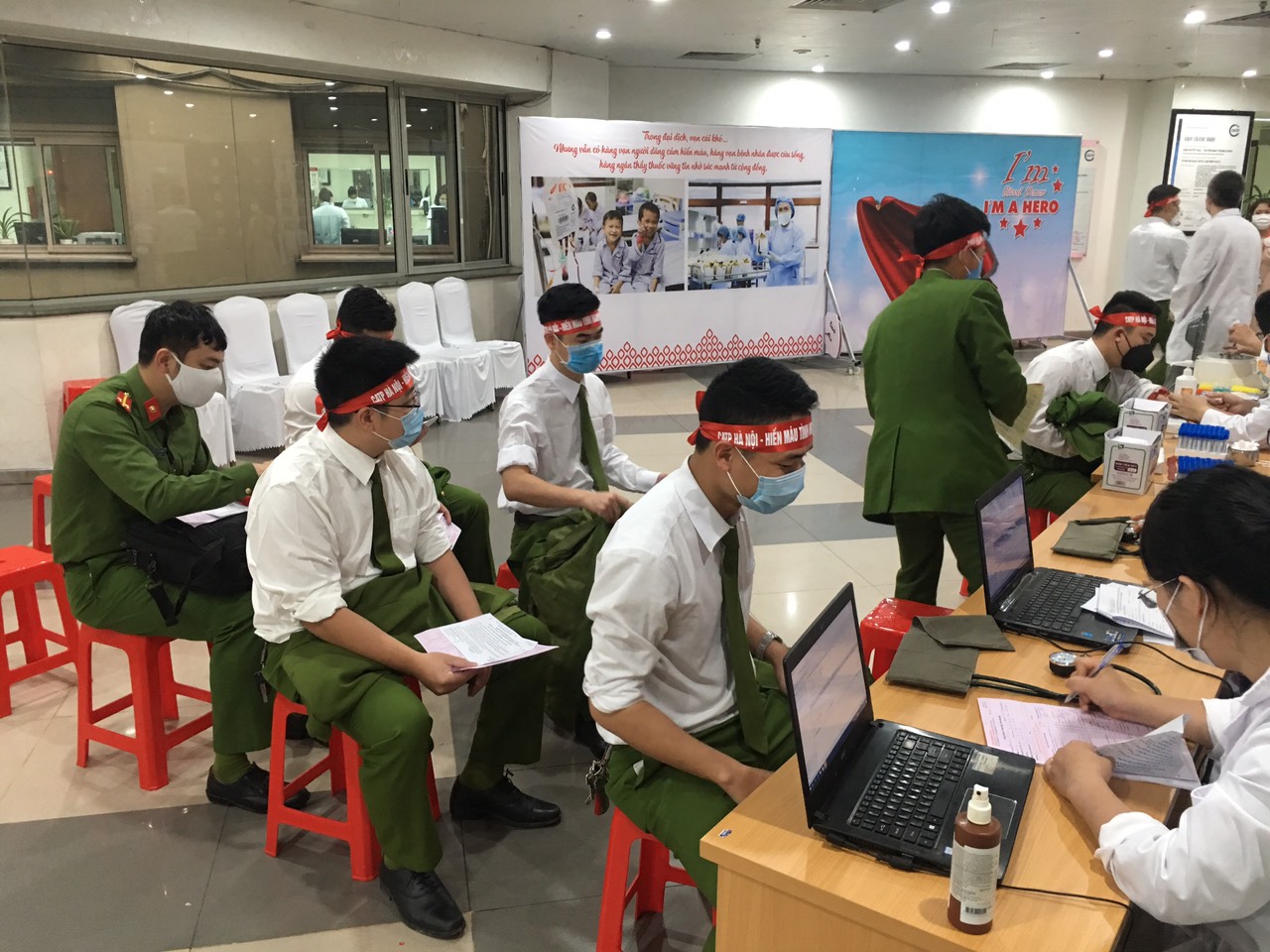 | Các cán bộ, chiến sĩ Công an tham gia hiến máu |