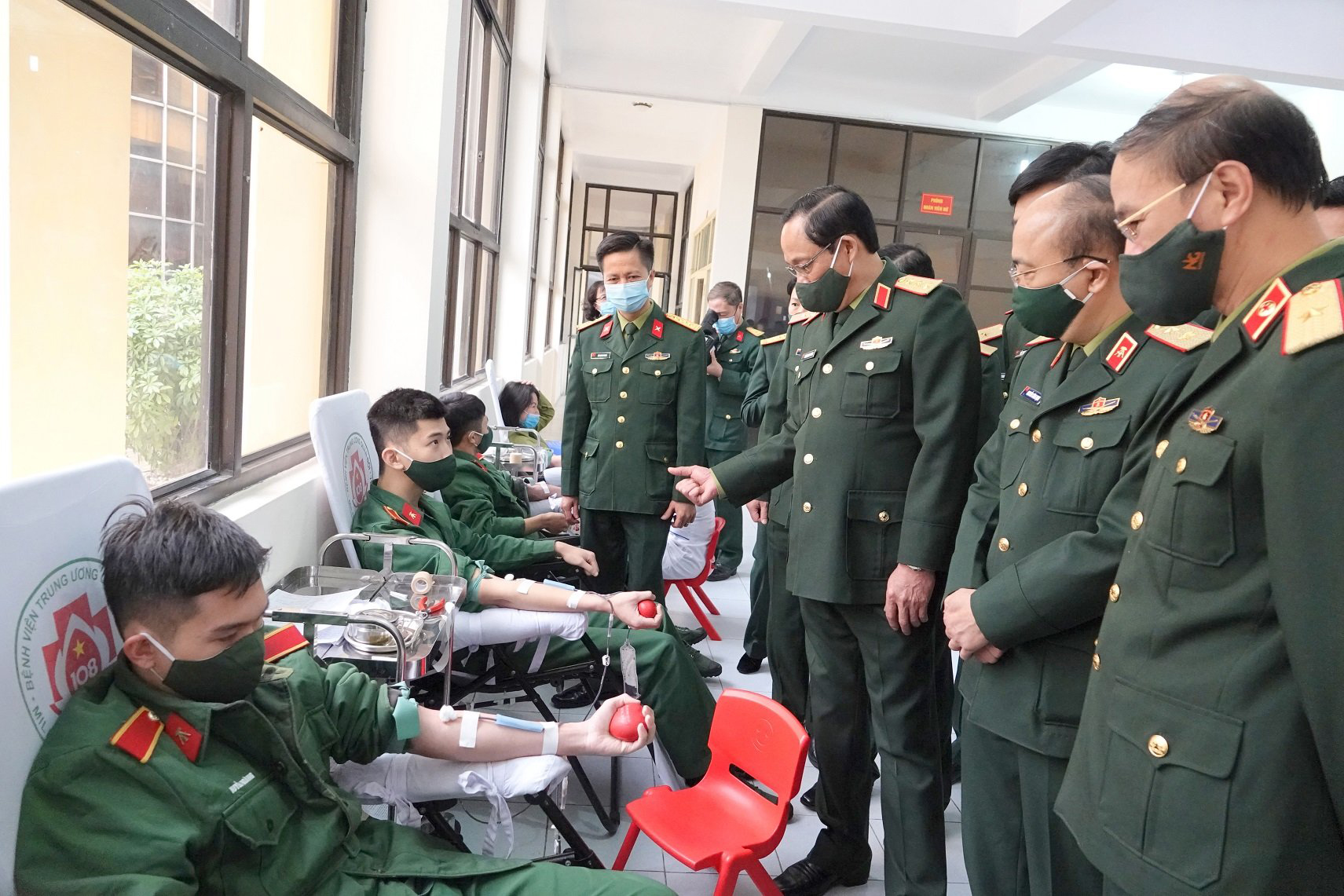 | Thượng tướng Trần Quang Phương động viên tuổi trẻ quân đội hiến máu tình nguyện |