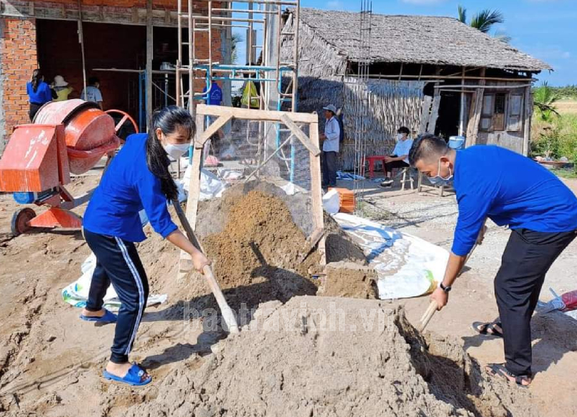 ĐVTN thành phố Trà Vinh tham gia xây dựng nhà ở cho học sinh có hoàn cảnh khó khăn. Ảnh: TV