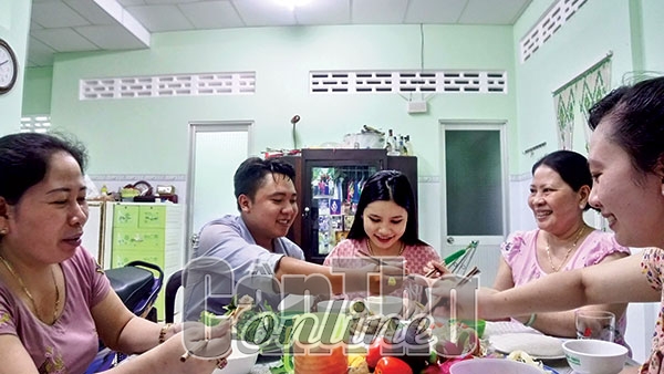 Hơn 52 năm qua, từ khi nên nghĩa vợ chồng, cô Phạm Thị Bích (72 tuổi) và chú Phạm Văn Châu (82 tuổi) ở quận Ninh Kiều, luôn dành hết tình yêu thương, chăm chút cho mái ấm. Mấy năm nay, sức khỏe cô Bích suy giảm nên chú Châu dành cho vợ sự chăm sóc đặc biệt. Hằng ngày, chú dậy sớm nấu nước pha trà, pha nước ấm cho vợ tắm, chuẩn bị thức ăn sáng và thuốc để sẵn rồi đi chợ, nấu ăn riêng cho vợ theo chế độ phù hợp dành cho người cao tuổi, có bệnh. Biết vợ thích ăn cá đồng, chú Châu đi chợ sớm để mua, còn rau trồng ở nhà xen với các loại hoa, vừa sạch vừa làm đẹp khoảng sân nhỏ trước nhà, cũng là nơi cô Bích thường ngồi uống trà thư giãn. Những khi trái gió trở trời, chú pha nước thuốc cho vợ ngâm chân, khăn choàng và áo ấm luôn để sẵn. Có khi chú Châu cùng vợ xem chung vở cải lương và ngược lại, cô Bích cũng đồng điệu với chồng khi trao đổi các vấn đề thời sự. Các con thấy cha mẹ “tương kính như tân” cũng học theo cách cư xử, trên dưới thuận hòa. Các thành viên trong gia đình cô Bích đều thích ăn cơm nhà nên chịu khó học nấu ăn, làm bánh…, cuối tuần sum vầy bên ông bà. Niềm hạnh phúc của cô chú bây giờ là mỗi ngày được chăm sóc cho nhau, chứng kiến sự thành công, hiếu thảo của con cháu. Cô Bích chia sẻ: “Dù tính cách có khác biệt nhưng đã sống chung thì phải tìm cách dung hòa. Chúng tôi luôn nhường nhịn, tin tưởng, tôn trọng nhau, dựa vào tính ý, sở thích bạn đời để đối đãi. Cho đi cũng là nhận lại, người thân vui, mình cũng vui theo”.