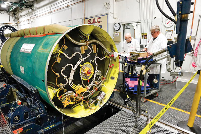 Mỹ bảo dưỡng tầng đẩy của tên lửa đạn đạo liên lục địa Minuteman III. Ảnh: KHÔNG QUÂN MỸ