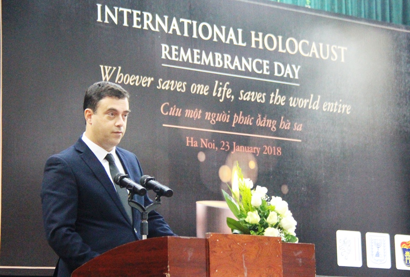 Tại Lễ tưởng niệm, Đại sứ đặc mệnh toàn quyền Nhà nước Israel tại Việt Nam Nadav Eshcar cho biết: Năm 2005, Đại hội đồng Liên hợp quốc đã quyết định lấy ngày 27/1 hàng năm là ngày quốc tế để tưởng niệm Holocaust. Ngày này được chọn vì nó đánh dấu việc kỷ niệm sự kiện giải phóng trại Auschwitz-Birkenau, trại giết người lớn nhất của quân phát xít. Đã trở thành một hoạt động thường niên, năm nay, Đại sứ quán Israel tại Việt Nam phối hợp với Đại sứ quán Cộng hòa Czech và Trường Đại học Khoa học Xã hội và Nhân văn (Đại học Quốc gia Hà Nội) tổ chức Ngày tưởng niệm các nạn nhân của nạn diệt chủng đối với người Do Thái trong Thế chiến II – Holocaust với thông điệp “Cứu một người phúc đẳng hà sa”.