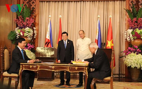 Chủ tịch nước Trương Tấn Sang và Tổng thống Philippines chứng kiến lễ ký kết thiết lập quan hệ Đối tác chiến lược giữa hai nước