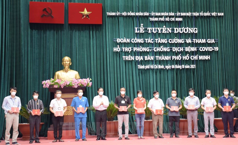 Nhằm tri ân và khen thưởng các tập thể, cá nhân lực lượng tuyến đầu của các đoàn công tác trực thuộc Bộ Quốc phòng, Bộ Công an, Bộ Y tế và các địa phương đã chi viện cho TP Hồ Chí Minh, ngày 6/10, Thành ủy, HĐND, Ủy ban MTTQ Việt Nam TP Hồ Chí Minh đã tổ chức Lễ tuyên dương Đoàn công tác tăng cường và tham gia hỗ trợ phòng, chống dịch bệnh COVID-19 trên địa bàn TP Hồ Chí Minh. Đồng chí Phan Văn Mãi, Ủy viên Trung ương Đảng, Phó Bí thư Thường trực Thành ủy TP Hồ Chí Minh, Chủ tịch UBND TP Hồ Chí Minh đến dự.