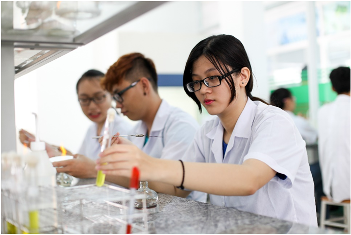 Sinh viên ngành dược Trường đại học Công nghệ TP.HCM trong giờ thực hành