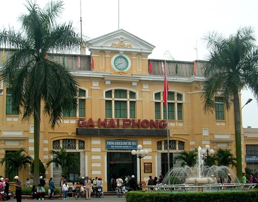| Cổng chính ga Hải Phòng tại số 75 đường Lương Khánh Thiện, thành phố Hải Phòng |