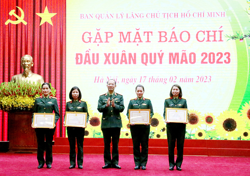 | Lãnh đạo Ban Quản lý Lăng Chủ tịch Hồ Chí Minh trao Bằng khen tặng các cá nhân có thành tích xuất sắc trong phối hợp thực hiện nhiệm vụ chính trị với Ban Quản lý Lăng năm 2022. |