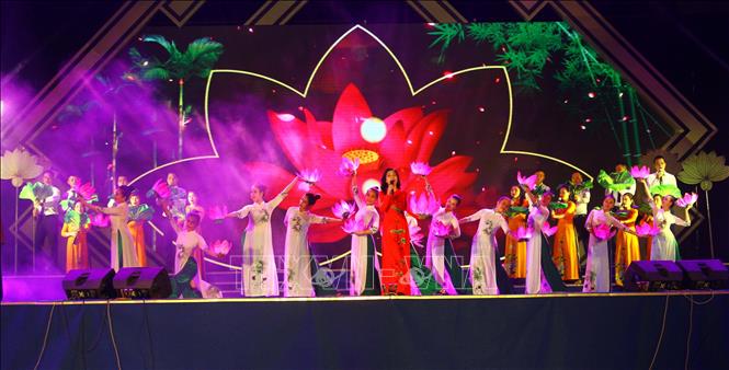 | Một tiết mục văn nghệ đặc sắc được biểu diễn tại đêm khai mạc Lễ hội Làng Sen 2019. (Ảnh: Tá Chuyên/TTXVN) |