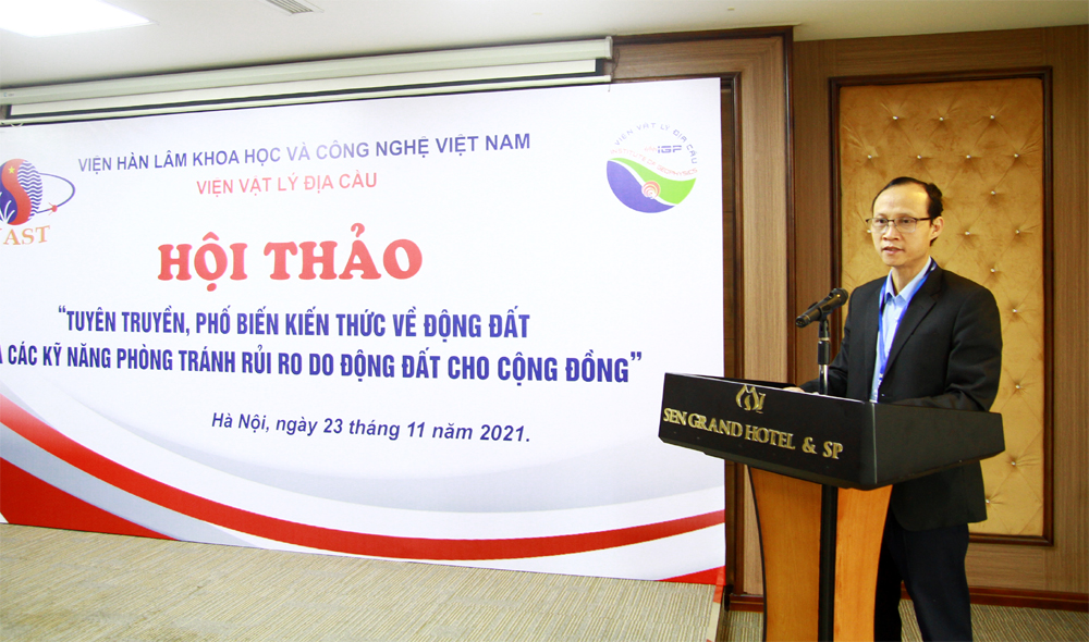 Phát biểu tại Hội thảo, TS Nguyễn Xuân Anh, Viện trưởng Viện Vật lý toàn cầu cho biết: Trong những năm qua, trước tác động của biến đổi khí hậu, Việt Nam là một trong những nước đã xảy ra nhiều trận động đất và dễ bị tổn thương do ảnh hưởng của biến đổi khí hậu. Tuy nhiên kiến thức về động đất, sóng thần, giải pháp phòng, chống, giảm nhẹ rủi ro của cộng đồng dân cư và các cấp quản lý đang còn hạn chế. Việc tuyên truyền phổ biến kiến thức về động đất và các kỹ năng phòng tránh rủi do động đất cho cộng đồng sẽ góp phần giảm thiểu rủi ro, nâng cao kỹ năng ứng phó.