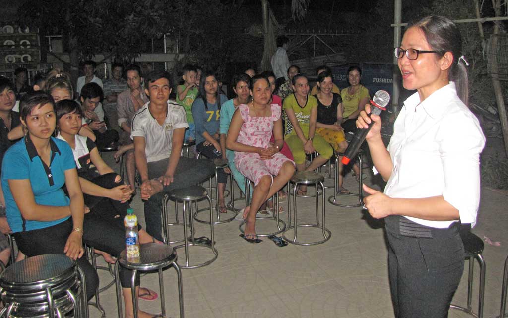 Giám đốc Trung tâm tư vấn pháp luật Công đoàn, LĐLĐ tỉnh - Phạm Thị Quyên tư vấn pháp luật cho công nhân