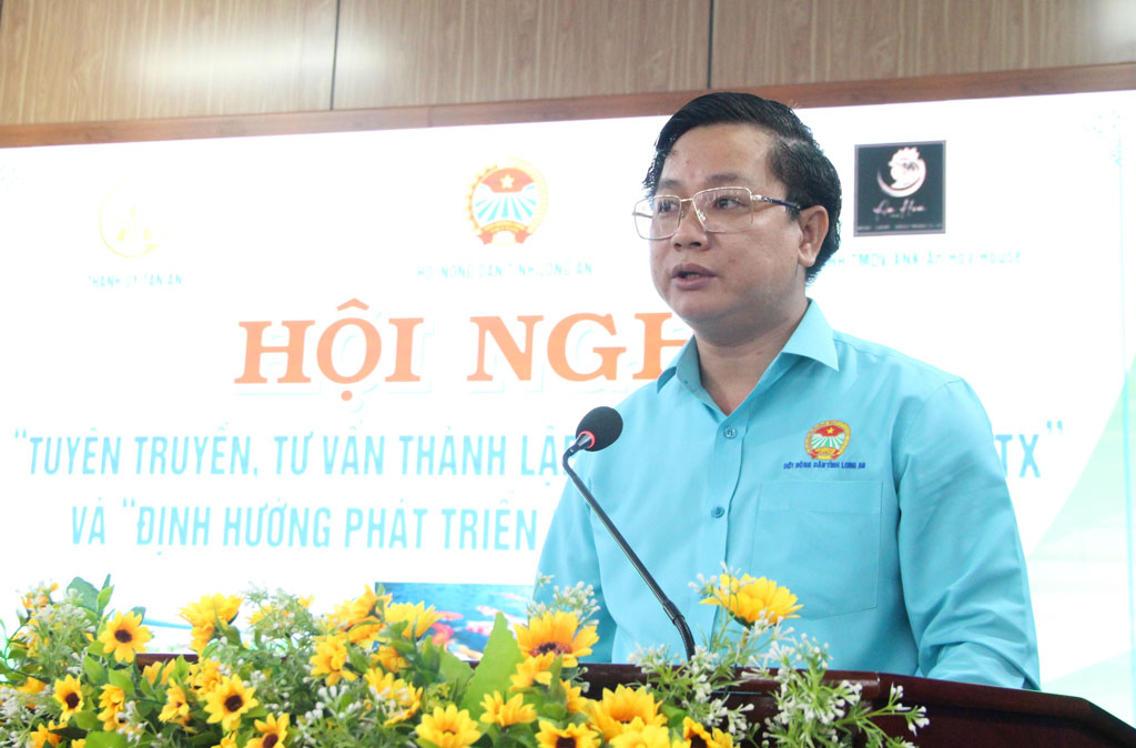 Phó Chủ tịch Hội Nông dân Việt Nam tỉnh - Trần Quốc Quân phát biểu tại hội nghị