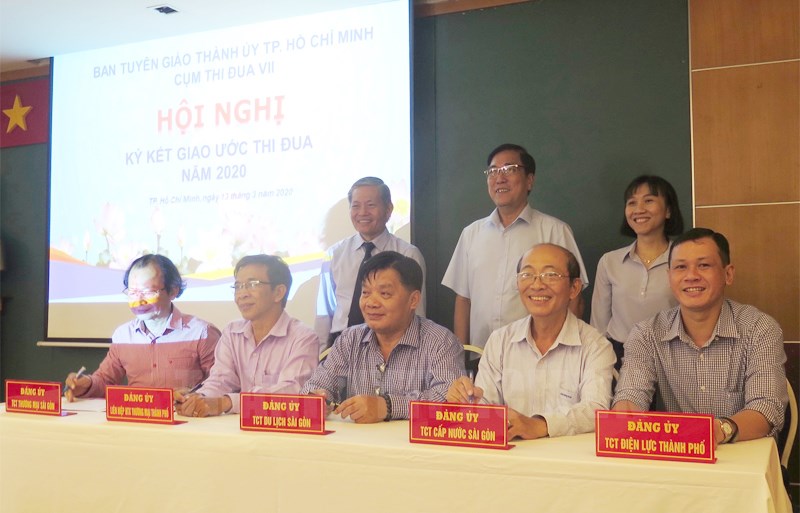 Tại hội nghị, 16 đơn vị trong Cụm thi đua 7 của Ban Tuyên giáo Thành ủy TP. Hồ Chí Minh gồm Ban Tuyên giáo Đảng ủy: Tổng Công ty Du lịch Sài Gòn, Tổng Công ty Điện lực TP. Hồ Chí Minh, Tổng Công ty Thương mại Sài Gòn, Tổng Công ty Địa ốc Sài Gòn, Tổng Công ty Bến Thành, Tổng Công ty Công nghiệp Sài Gòn, Tổng Công ty Cấp nước Sài Gòn, Công ty Dược Sài Gòn, Liên hiệp Hợp tác xã Thương mại TP. Hồ Chí Minh, Công ty Đầu tư tài chính Nhà nước TP. Hồ Chí Minh, Tổng Công ty Nông nghiệp Sài Gòn, Tổng Công ty Xây dựng Sài Gòn, Tổng Công ty Liksin, Tổng Công ty Văn hóa Sài Gòn, Tổng Công ty Cơ khí Giao thông vận tải Sài Gòn, Khối Doanh nghiệp TP. Hồ Chí Minh đã tiến hành ký kết giao ước thi đua 2020.