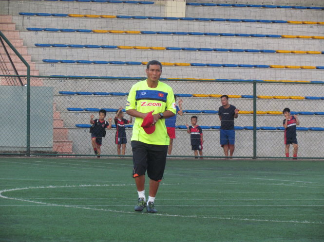HLV Mai Đức Chung trong buổi tập chiều 31-8. Ảnh: Tá Hiền