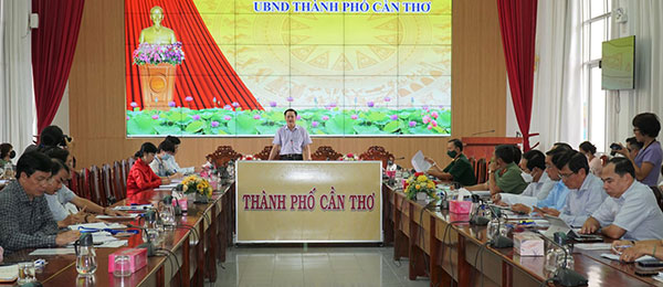Cuộc họp bàn về công tác chuẩn bị Kỳ thi năm 2022 trên địa bàn thành phố của các thành viên trong Ban Chỉ đạo Thi tốt nghiệp THPT năm 2022 TP Cần Thơ vào tháng 5-2022.