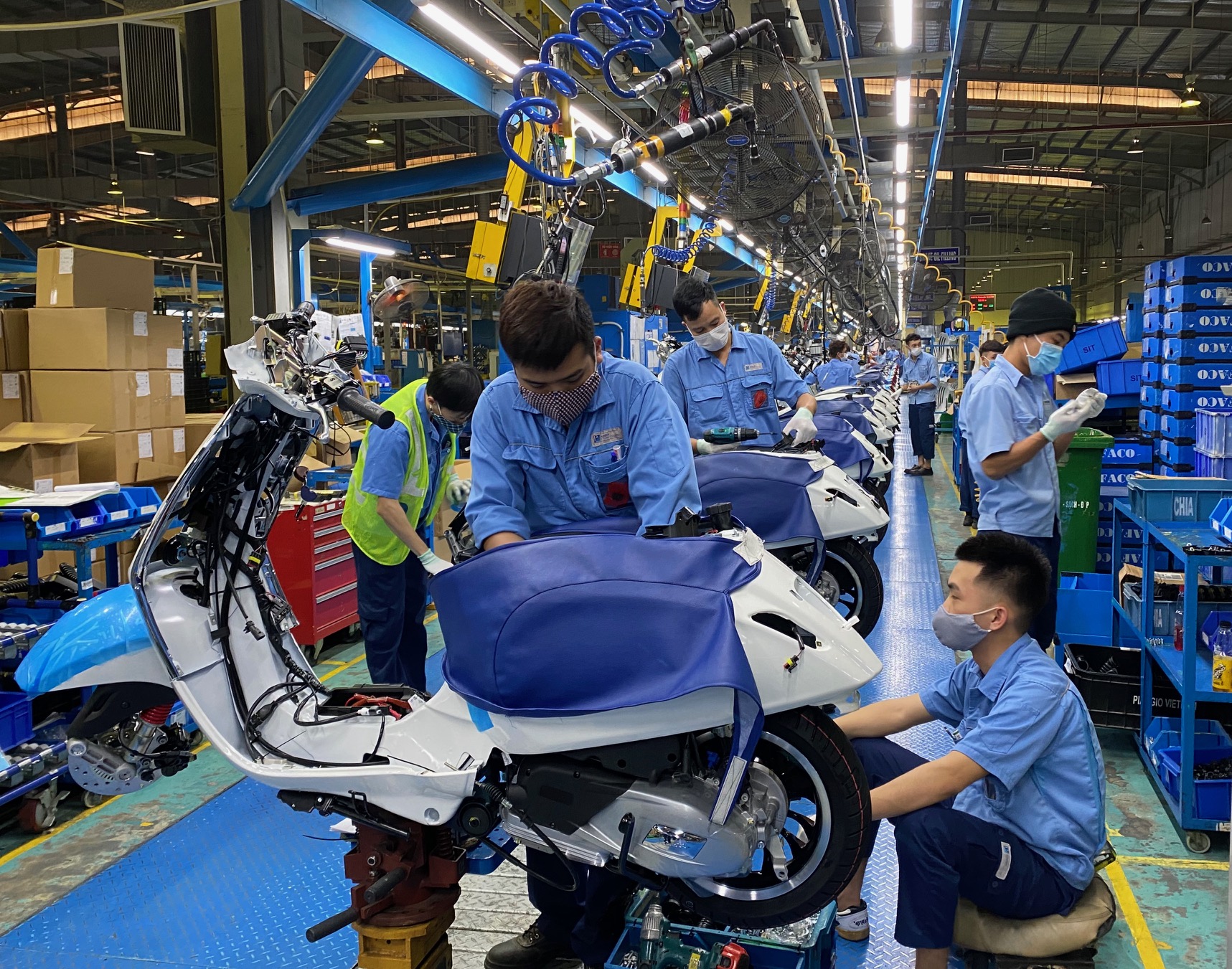 | Công nhân thực hiện đeo khẩu trang 100% trong thời gian làm việc |