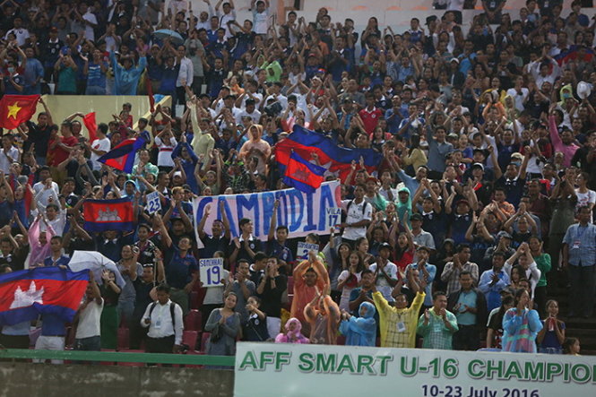 Khán giả Campuchia ủng hộ cuồng nhiệt cho các cầu thủ nhà. Ảnh: ANH ĐỨC