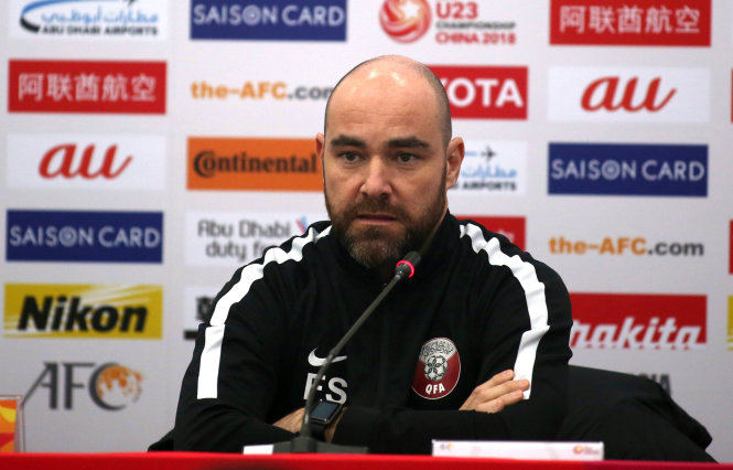 HLV Felix Sanchez trong buổi họp báo. Ảnh: N.K