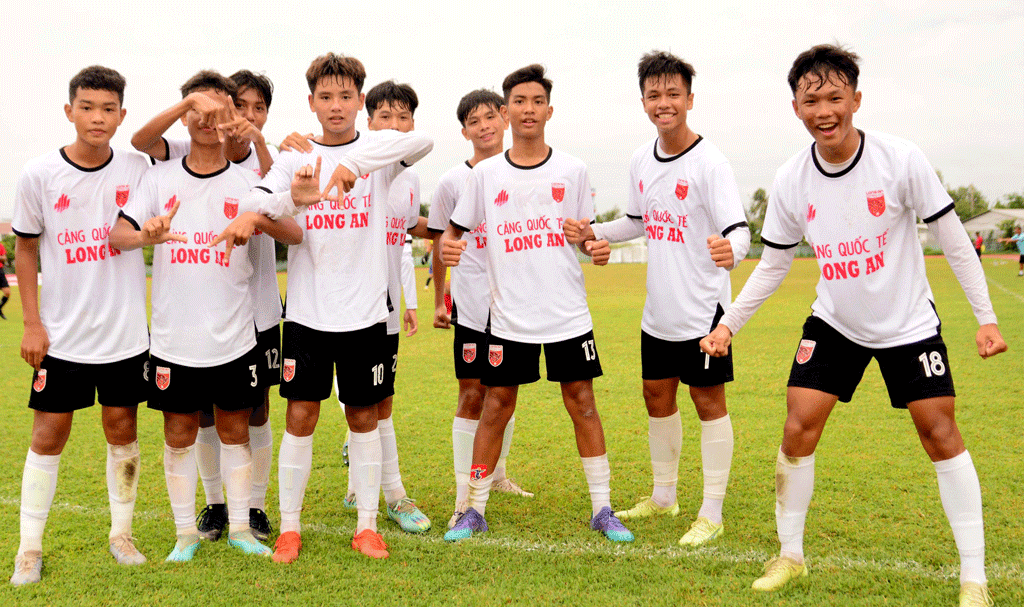 Đội bóng U15 Long An vượt lên dẫn trước trong hiệp 1