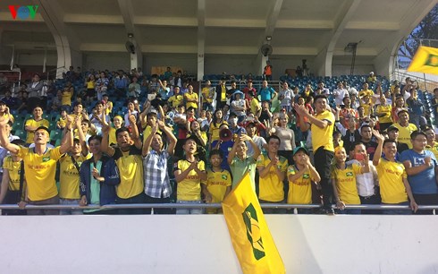 Các CĐV SLNA ăn mừng chức vô địch. (Ảnh: Hà Khánh)