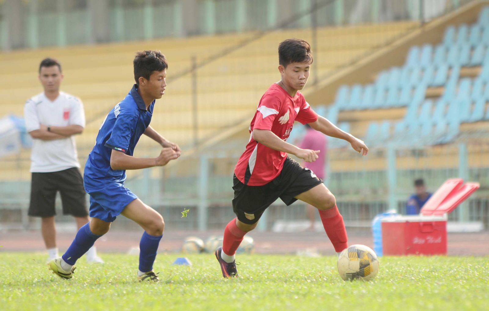 Các cầu thủ U19 Long An giao hữu trước U19 Tiền Giang