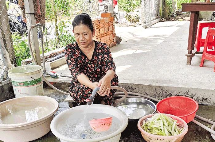Sử dụng nước sạch tại hộ bà Liêu Thị Hồng ở xã Thới Xuân.