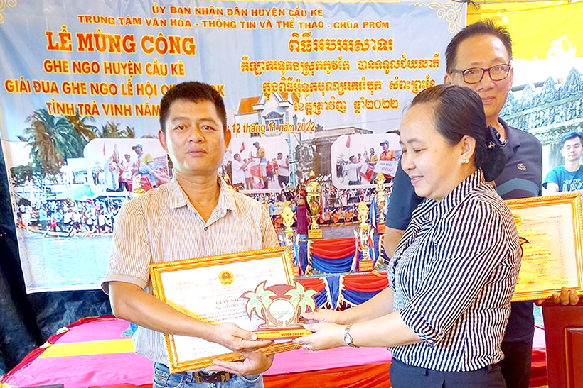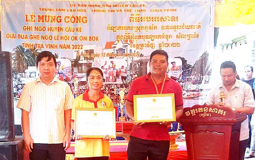 Dịp này, UBND huyện Cầu Kè trao tặng 12 Giấy khen cho 02 tập thể và 10 cá nhân có những đóng góp, góp phần tạo nên thắng lợi cho đội ghe ngo của huyện. Bên cạnh, tại lễ mừng công các tập thể, cá nhân mạnh thường quân đã tiếp tục có những đóng góp nguồn lực cho đội trên 50 triệu đồng.