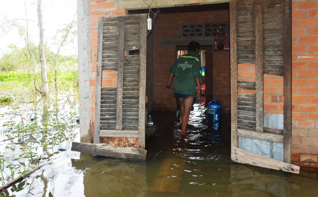 Trong suốt 2 năm qua, những hộ dân nằm phía sau UBND thị trấn Tân Thạnh quanh năm phải sống trong cảnh ngập lụt