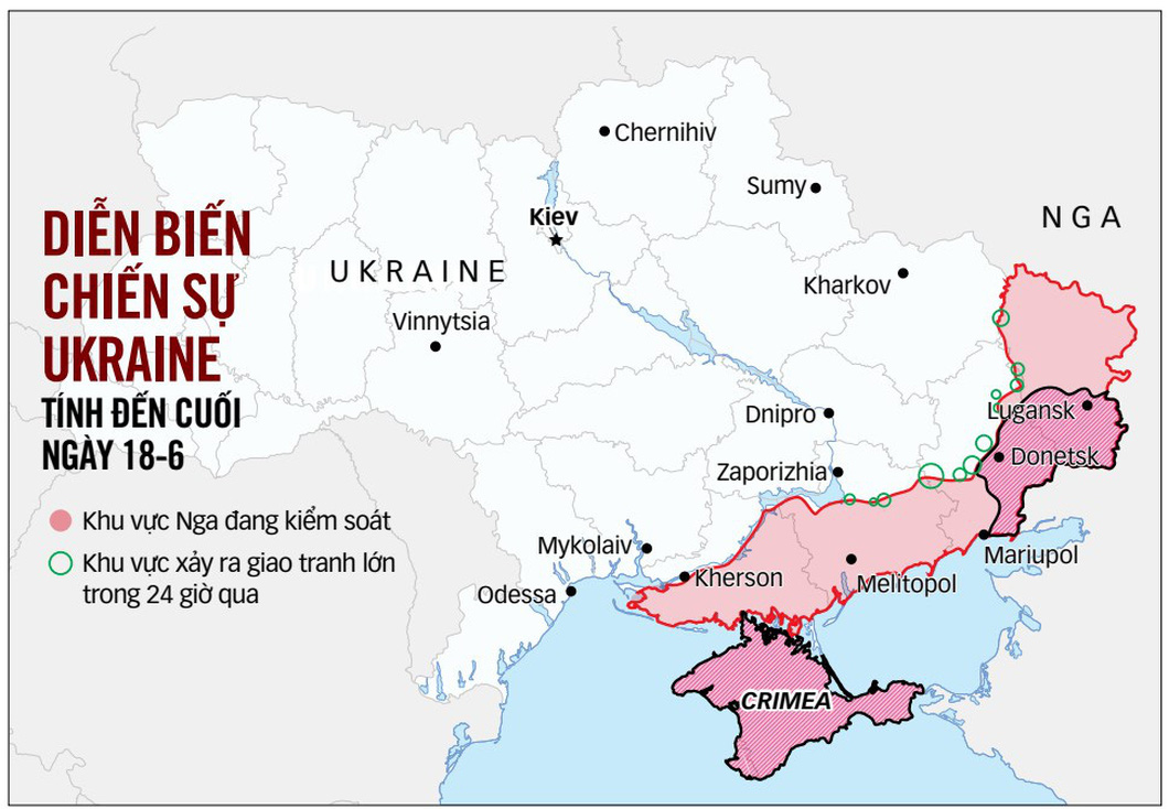 Theo Anh, thiệt hại của Nga trong cuối tuần qua có thể là lớn nhất kể từ sau trận chiến Bakhmut. Còn theo dữ liệu ngày 19-6 của Viện Nghiên cứu chiến tranh (ISW) có trụ sở tại Mỹ, giao tranh trong 24 giờ qua tập trung dọc theo chiến tuyến ở miền đông Ukraine.