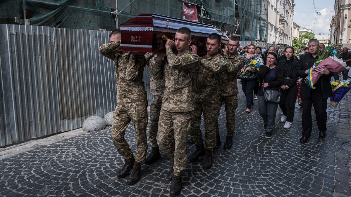 Lễ tang của một binh sỹ Ukraine bị thiệt mạng tại Lviv, Ukraine. Ảnh: Getty