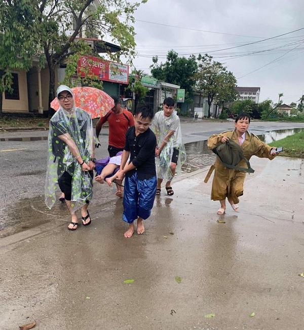 | 1 phụ nữ được kịp thời đưa đi sinh con trong trận lũ tại miền Trung vừa qua (Nguồn ảnh: Newzing.vn) |
