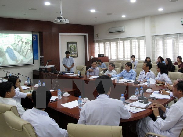 Các bác sỹ Bệnh viện Nhân Dân Gia Định hỗ trợ chẩn đoán từ xa cho bệnh nhân ở Bệnh viện huyện Củ Chi. (Ảnh: Phương Vy/TTXVN)