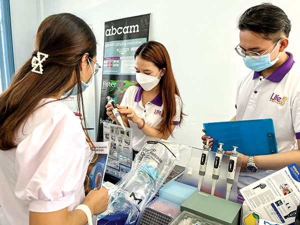 Công ty Life Sciences giới thiệu thiết bị phục vụ giải pháp đếm tế bào dòng chảy đến các đại biểu.