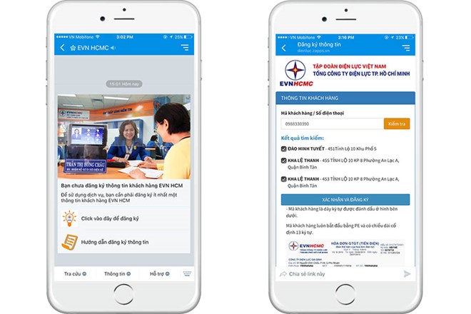Dịch vụ tiện ích của EVN Thành phố Hồ Chí Minh trên Zalo. (Nguồn: VNG)
