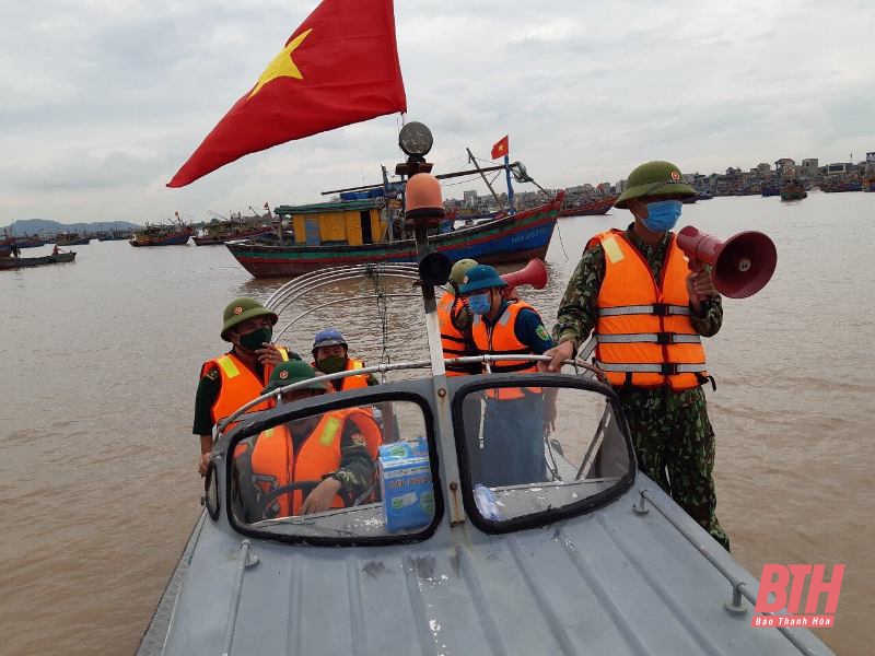 | Đồn Biên phòng Đa Lộc (Bộ đội biên phòng tỉnh Thanh Hóa) kêu gọi tàu thuyền của ngư dân vào bờ . (Nguồn ảnh: baothanhhoa.vn) |