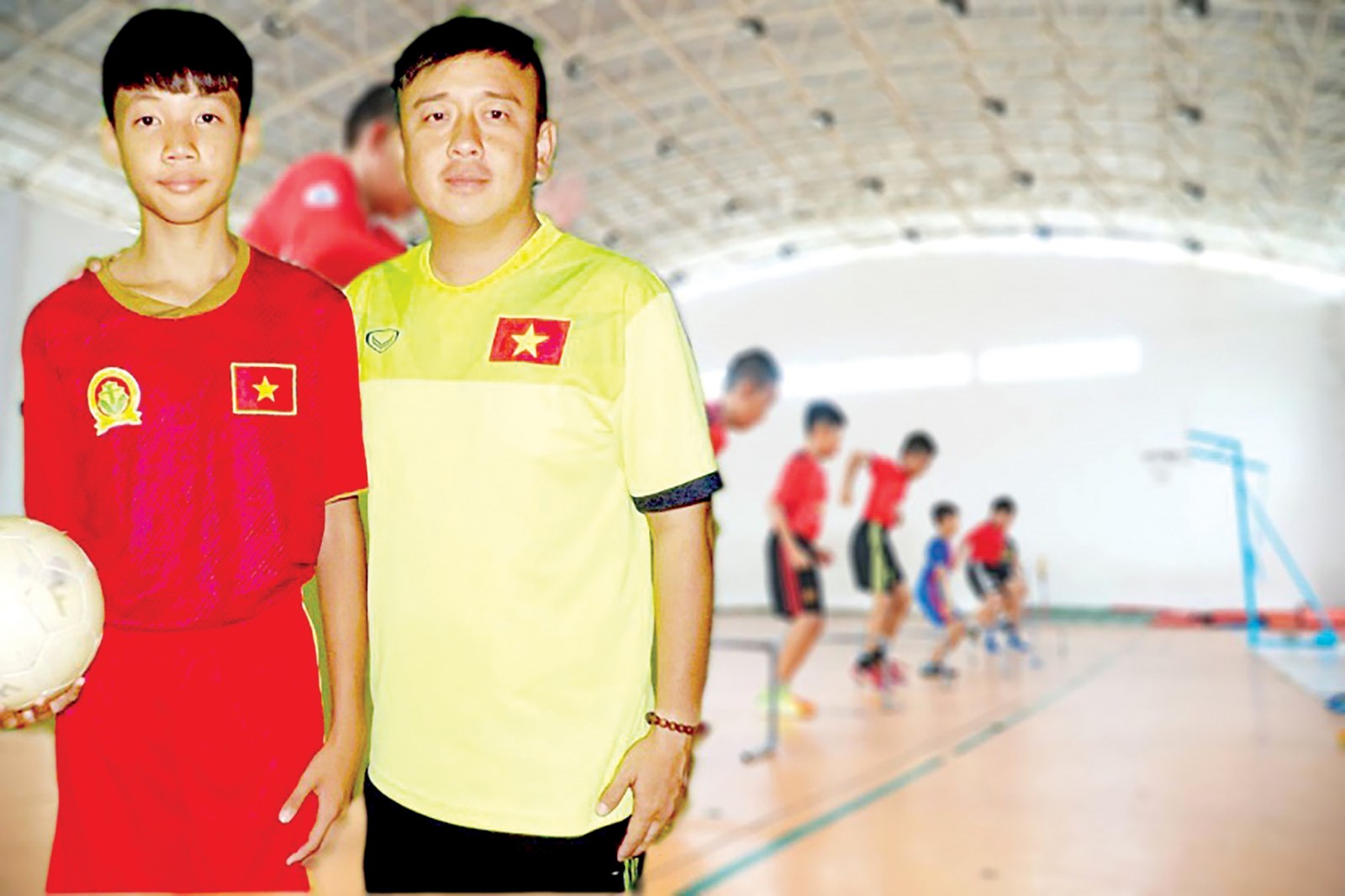 HLV Lý Tiền Minh (phải) và học trò Sĩ Luân trước một buổi tập tại Nhà thi đấu Trường Tiểu học Võ Trường Toản. Ảnh: NVCC