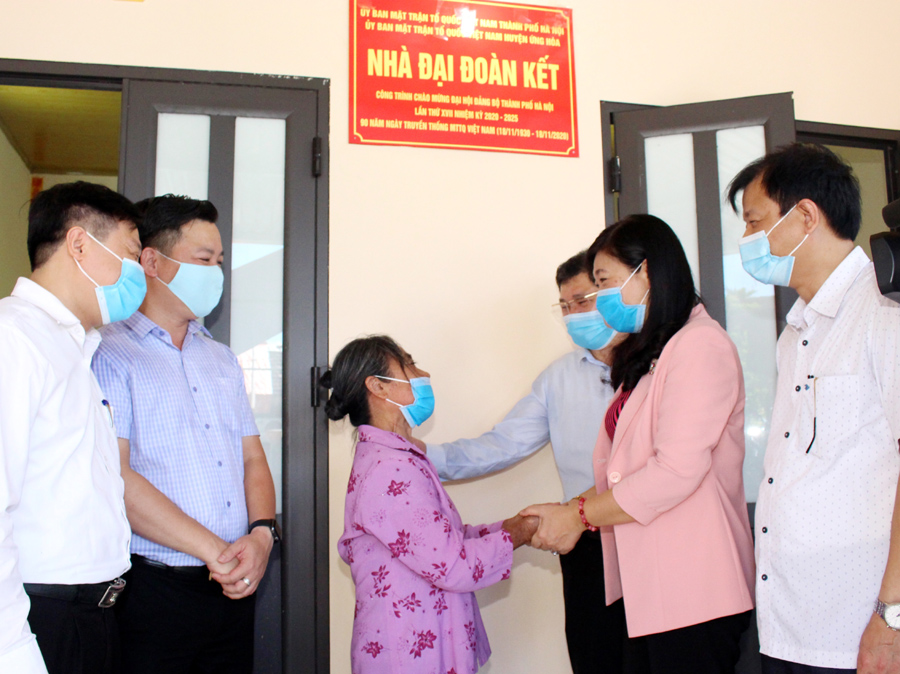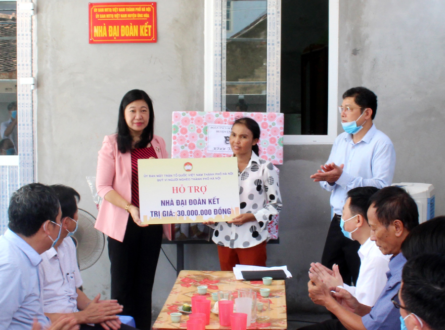 Phát biểu tại buổi lễ, Phó Chủ tịch không chuyên trách Ủy ban Trung ương MTTQ Việt Nam, Chủ tịch Ủy ban MTTQ Việt Nam TP Hà Nội Nguyễn Lan Hương cảm ơn sự phối hợp hỗ trợ của huyện, xã, thôn; tinh thần đoàn kết của bà con hàng xóm, dòng dọ trong việc chung tay, góp sức để ngôi nhà Đại đoàn kết của bà Dư Thị Phúc được hoàn thành đúng tiến độ. Đặc biệt, Ủy ban MTTQ Việt Nam huyện Ứng Hòa đã thể hiện được vai trò cầu nối trong công tác xóa đói, giảm nghèo ở địa phương. Thời gian tới, các ngành chức năng của huyện Ứng Hòa và xã Tảo Dương Văn tiếp tục quan tâm để ngôi nhà Đại đoàn kết của gia đình ông Đặng Đình Miêng được hoàn thành đúng tiến độ.