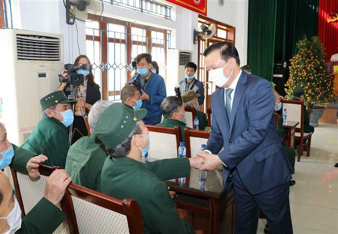 Ủy viên Bộ Chính trị, Bộ trưởng Bộ Tài chính Đinh Tiến Dũng thăm, chúc Tết Trung tâm điều dưỡng thương binh Nho Quan