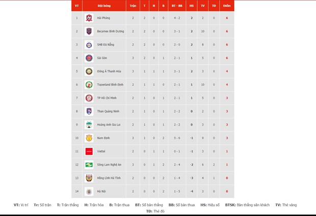 Bảng xếp hạng V-League 2021 trước khi phải tạm hoãn. (Ảnh: VPF)