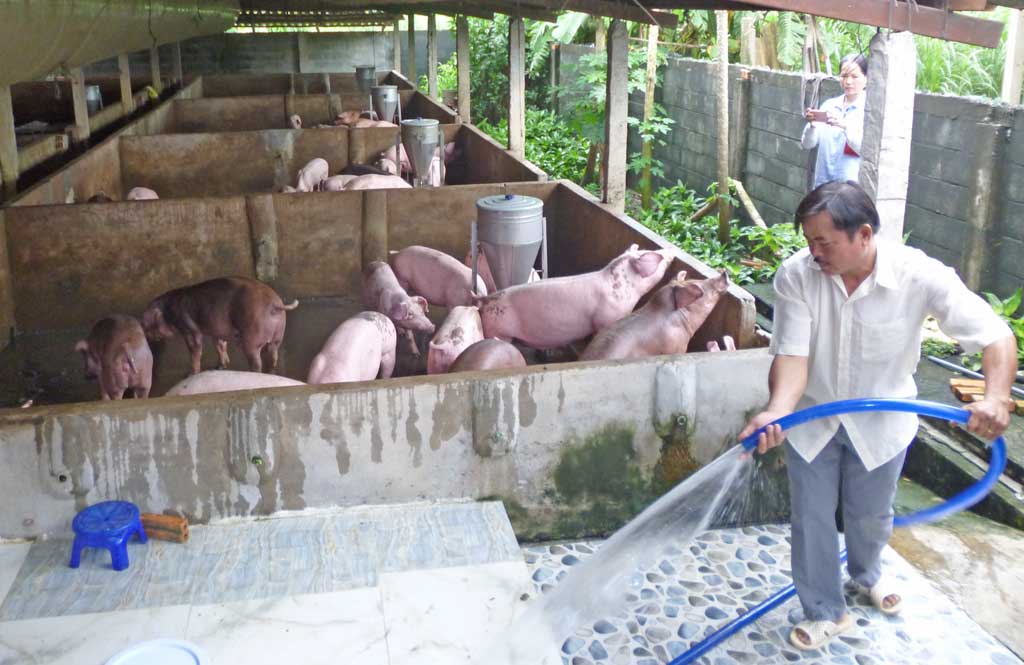 Vậy anh có bị “thua” keo nào không? Không! Tui nuôi kiểu truyền thống kết hợp hiện đại; dứt khoát không dùng chất kích thích tăng trưởng, tạo nạc. Mà sử dụng các thứ độc tố ấy thì mình lãnh hậu quả trước - qua quá trình pha chế,... Anh cho biết, nuôi heo lời hơn người ta là do anh tự sản xuất, pha chế thức ăn cho heo; làm đúng khuyến cáo của cơ quan khuyến nông, nên giá thành thấp. Các trại heo của anh xuất chuồng vào những lúc thị trường đang có giá, xuất bán đồng loạt 15-20 tấn/lần. Ở Đức Lập Hạ có nhiều lò giết mổ gia súc rất giàu, họ có xe tải lớn, đến tận trại xem, thấy heo “sạch”, họ mới chịu mua. Mỗi năm, anh cho xuất chuồng 70-80 tấn heo thịt, chưa kể số heo giống bán ra cho người nuôi.