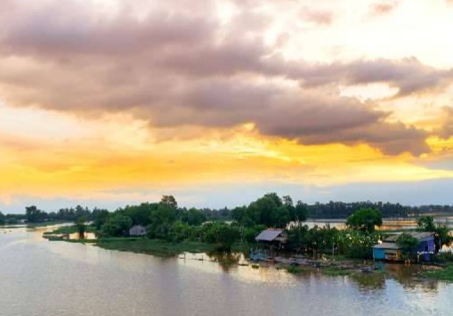 Nhà tôi ở ngay vàm sông. Phía trước nhà là một con kênh khá rộng, xuồng ghe thông thoáng. Bên hông trái là một con rạch nhỏ, chỉ vừa hai chiếc xuồng ba lá tránh nhau để vận chuyển lúa, trái cây khi vào mùa thu hoạch. Bên hông phải là con sông Cổ Chiên rộng lớn, người dân ở đây gọi là sông Cái. Ba mặt bên nhà đều giáp với sông, rạch, chỉ còn mặt phía sau là giáp mảnh vườn của ông bà để lại. Điều đó đồng nghĩa với việc, khi tôi “nứt mắt”, nhìn đâu cũng thấy nước.