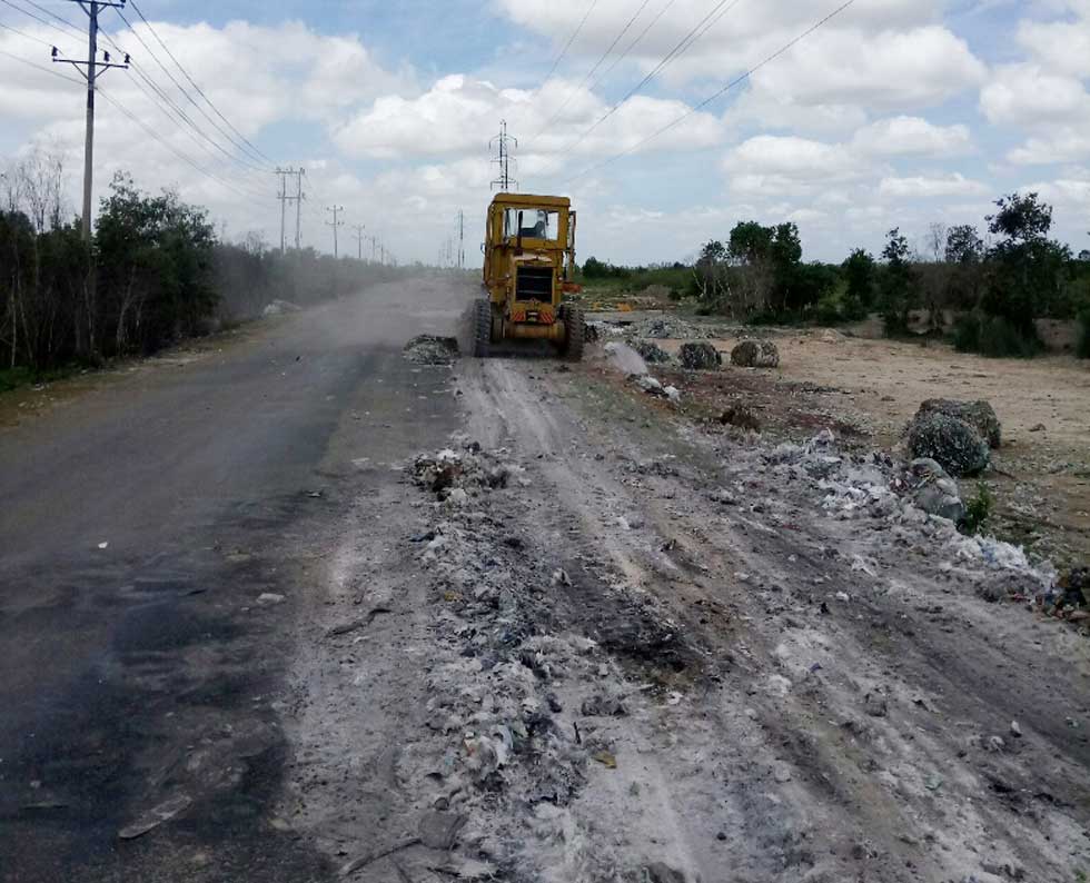 Sở Giao thông - Vận tải cho đơn vị quản lý đường ban gạt phần rác tập kết trên Đường tỉnh 823C để lưu thông thuận lợi hơn
