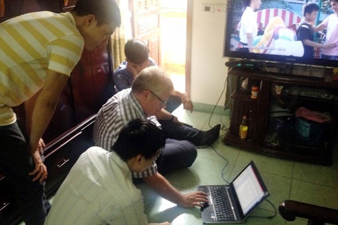 Chuyên gia Nielsen đào tạo lắp đặt thiết bị tại hộ gia đình tham gia vào dự án. (Nguồn: Cục PTTH và TTĐT)
